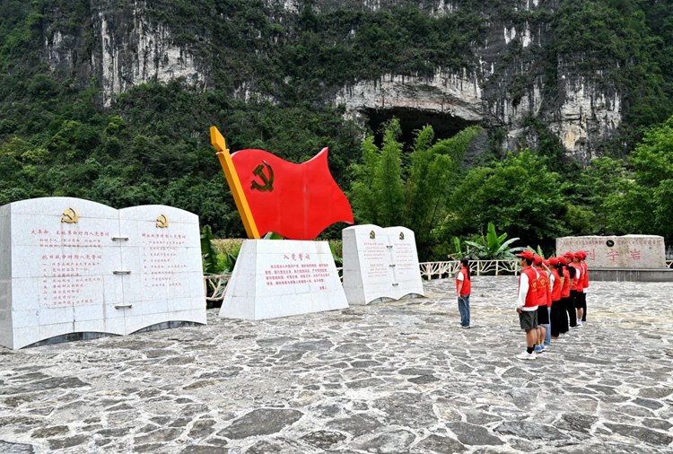 實(shí)踐團(tuán)和服務(wù)團(tuán)成員在講解員的帶領(lǐng)下,先后到廣西農(nóng)民運(yùn)動(dòng)講習(xí)所舊址列寧巖、韋拔群故居、中共紅七軍前委舊址魁星樓等地參觀學(xué)習(xí),追憶革命先輩,重溫革命歲月,接受革命精神洗禮,深刻感受了革命先烈為新中國(guó)勝利所付出的艱辛和犧牲,堅(jiān)定了理想信念,強(qiáng)化了青年使命擔(dān)當(dāng)。大家參觀后,感慨萬(wàn)分。在列寧巖,被革命先烈在這艱苦的條件下奮勇斗爭(zhēng)的精神所折服。在韋拔群故居,回顧這位中國(guó)早期著名農(nóng)民運(yùn)動(dòng)領(lǐng)袖領(lǐng)導(dǎo)人的光輝奮斗歷程,為英雄不幸犧牲而悲痛惋惜;感受到了韋拔群等先烈在如此簡(jiǎn)陋的環(huán)境下,克服重重困難,堅(jiān)持革命,為廣西農(nóng)民運(yùn)動(dòng)和革命事業(yè)作出了巨大貢獻(xiàn)。在魁星樓,大家了解到了老一輩無(wú)產(chǎn)階級(jí)革命家鄧小平和張?jiān)埔莸韧倔@天動(dòng)地的豐功偉績(jī),深刻感受到了先烈們?yōu)楦锩鼊倮宫F(xiàn)的堅(jiān)定不移的革命理想信念。