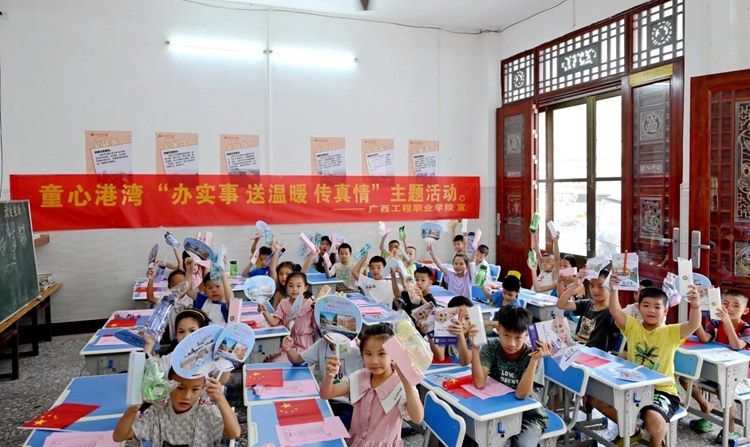 實(shí)踐團(tuán)、服務(wù)團(tuán)成員開(kāi)展了“童心港灣‘辦實(shí)事 送溫暖 傳真情’”主題活動(dòng)。活動(dòng)中,志愿者們教小孩子唱歌、朗誦、畫畫,以《歌唱祖國(guó)》《我愛(ài)祖國(guó)》等為主題,慶祝今年新中國(guó)成立75周年,增強(qiáng)孩子們的愛(ài)國(guó)意識(shí);同時(shí)還給孩子們送上五顏六色的文具、水杯、雨傘、糖果、筆記本等愛(ài)心紀(jì)念品,整個(gè)活動(dòng)充滿歡聲笑語(yǔ)。