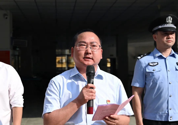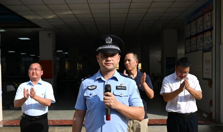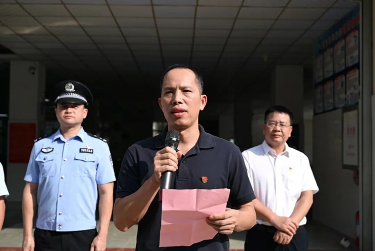 平果市公安局副局長陸榮康宣布“校園反詐食堂”正式啟用