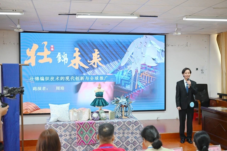 圖為《壯錦未來(lái)—壯錦編織技術(shù)的現(xiàn)代創(chuàng)新與全球推廣》項(xiàng)目展示