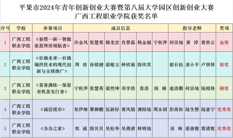 經(jīng)過(guò)緊張激烈的角逐,最終,我校“蠶燃一新——智能蠶繭烤房領(lǐng)航者”項(xiàng)目憑借其獨(dú)特的技術(shù)優(yōu)勢(shì)和廣闊的市場(chǎng)前景,榮獲金獎(jiǎng),“壯錦未來(lái)——壯錦編織技術(shù)的現(xiàn)代創(chuàng)新與全球推廣”項(xiàng)目榮獲銀獎(jiǎng),《茶香滿(mǎn)桂——保留有機(jī)茶先行者》項(xiàng)目團(tuán)隊(duì)獲得銅獎(jiǎng),《辦辦之家》及《誠(chéng)信紙巾》項(xiàng)目團(tuán)隊(duì)分別獲得優(yōu)秀獎(jiǎng)。