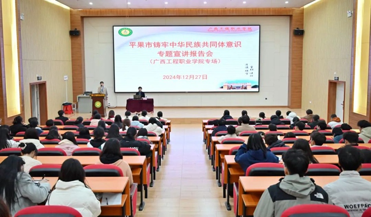 為全面貫徹落實(shí)黨的二十屆三中全會(huì)精神,深入學(xué)習(xí)貫徹習(xí)近平總書(shū)記關(guān)于加強(qiáng)和改進(jìn)民族工作的重要思想,貫徹落實(shí)習(xí)近平總書(shū)記關(guān)于廣西工作論述的重要要求,增強(qiáng)鑄牢中華民族共同體意識(shí)的責(zé)任感和使命感,2024年12月27日上午,在圖文信息大樓三樓學(xué)術(shù)報(bào)告廳,我校舉辦鑄牢中華民族共同體意識(shí)專(zhuān)題宣講報(bào)告會(huì)。學(xué)校黨員干部、專(zhuān)任教師、輔導(dǎo)員和學(xué)生代表等200多人參加宣講報(bào)告會(huì),報(bào)告會(huì)由黨委辦公室副主任黃香琴主持。