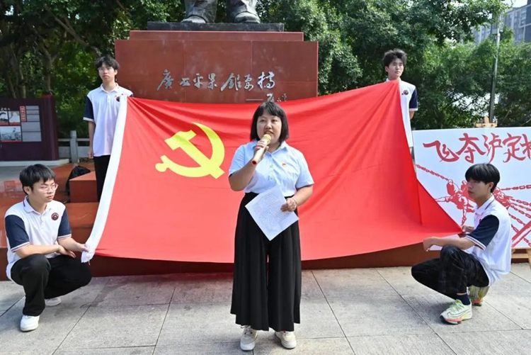 在鄧小平銅像廣場,學校黨委副書記、校長羅艷妮講話,她指出此次“紅色基因體驗行”專題研學活動不僅是一次參觀學習之旅,更是一次精神洗禮和黨性錘煉。通過實地參觀體驗和現場教學,學生們深刻感受到了革命先烈們的英勇事跡和崇高精神,進一步堅定了理想信念,增強了歷史使命感和社會責任感。希望同學們以此次研學活動為契機,傳承紅色基因,弘揚紅色精神,努力成為有理想、敢擔當、能吃苦、肯奮斗的新時代好青年,為實現中華民族偉大復興的中國夢貢獻青春力量。