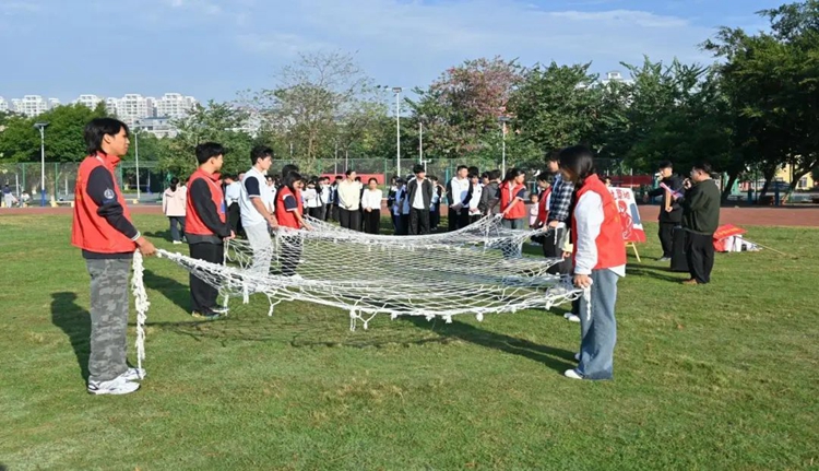 首先進行紅軍過草地關卡一活動,兩組隊長帶領隊員在固定網格區(qū)域按照匍匐前進的姿勢穿過網格,體驗紅軍過草地過程。紅軍過草地的故事給同學們帶來了啟示:團隊合作和領導力是攻克難關的關鍵,只有憑借著意志的力量和不屈不撓的精神才能實現自己的目標,無論在什么時候都應該像紅軍一樣,砥礪前行,永不言棄。