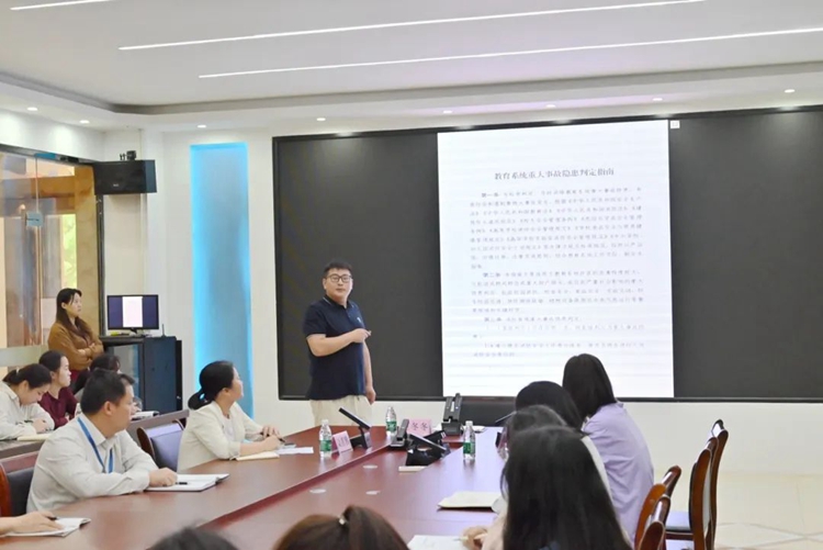 圖為保衛(wèi)處副處長(zhǎng)王冬冬解讀《教育系統(tǒng)重大事故隱患判定指南》