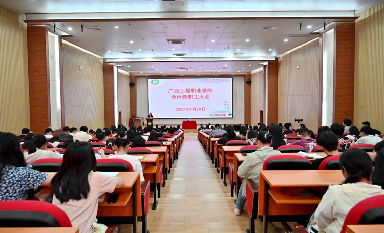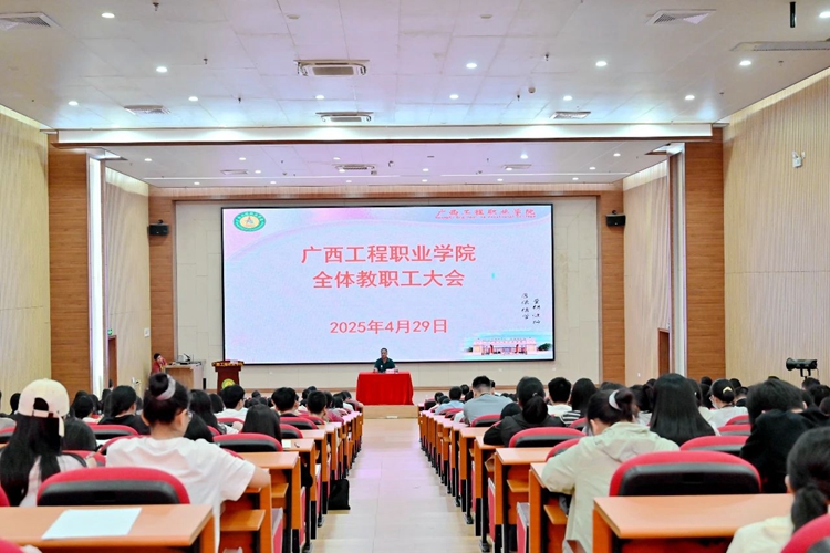 2025年4月29日下午,廣西工程職業(yè)學(xué)院在圖文信息大樓一樓報(bào)告廳召開全體教職工會(huì)議,學(xué)校董事長(zhǎng)李益,黨委書記、督導(dǎo)專員蒙本曼,黨委副書記黃秋霞,副校長(zhǎng)蔣茂麗、黃德偉,校長(zhǎng)助理梁善雅出席會(huì)議。會(huì)議由黨委副書記、校長(zhǎng)羅艷妮主持。