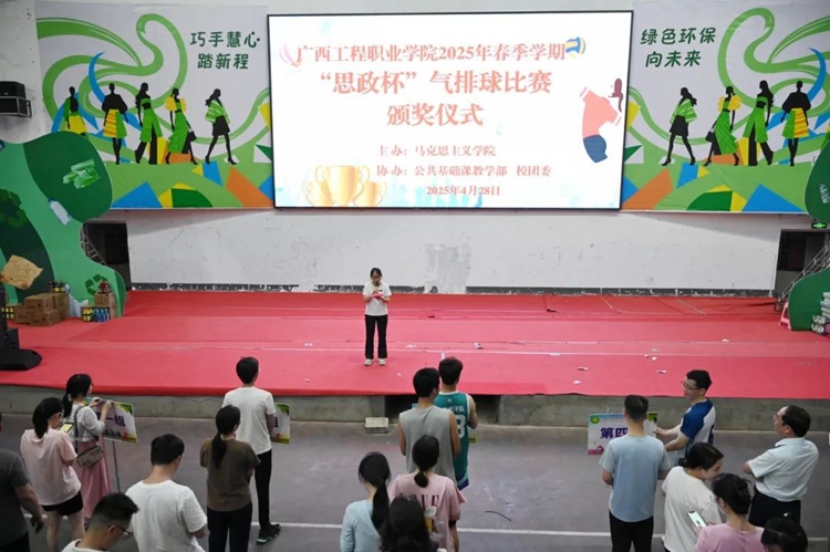 圖為馬克思主義學(xué)院副院長(zhǎng)李麗詩(shī)宣布2025年春季學(xué)期“思政杯”氣排球比賽獲獎(jiǎng)名單