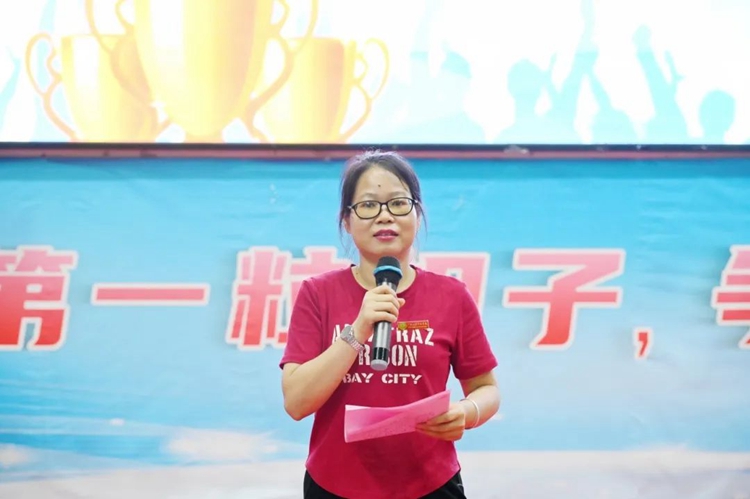 圖為黨委書記、督導(dǎo)專員蒙本曼為獲得第一名的組別頒獎(jiǎng)