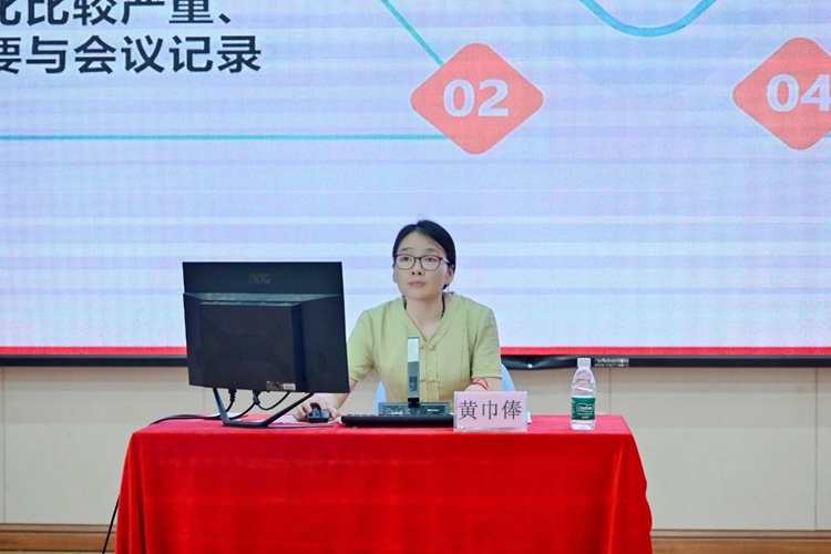 圖為質(zhì)量管理辦公室副主任藍(lán)桂敏作專(zhuān)題培訓(xùn)
