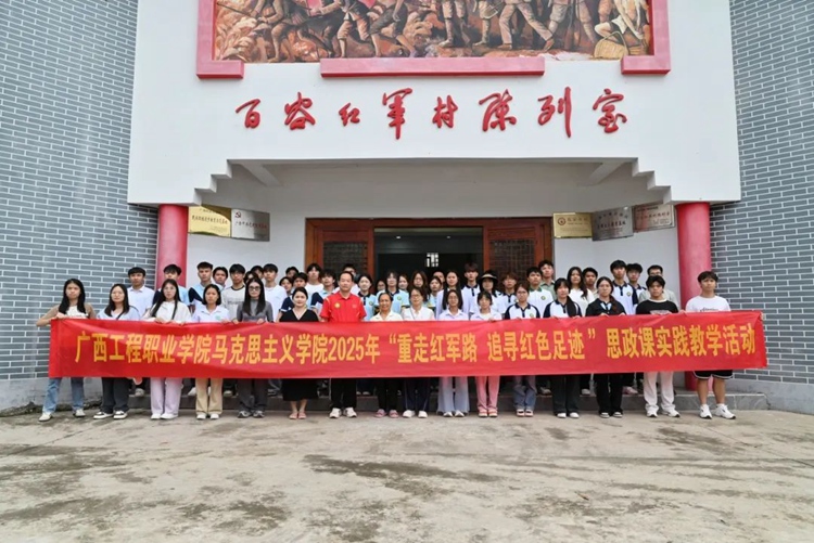 為了進(jìn)一步推動(dòng)思政小課堂與社會(huì)大課堂的深度融合,充分發(fā)揮“大思政課”在培養(yǎng)學(xué)生社會(huì)責(zé)任感和使命感方面的作用,推動(dòng)思想政治理論教學(xué)和實(shí)踐教學(xué)相融合,切實(shí)提升思想政治教育實(shí)效性,5月18日,廣西工程職業(yè)學(xué)院馬克思主義學(xué)院赴百色市田東縣開(kāi)展“重走紅軍路 追尋紅色足跡”思政課實(shí)踐教學(xué)活動(dòng)?;顒?dòng)由黨委書(shū)記、政府督導(dǎo)專(zhuān)員蒙本曼帶隊(duì),思政課教師及學(xué)生代表共60多人參加。本次實(shí)踐活動(dòng)分四個(gè)教學(xué)點(diǎn),師生先后參觀了那恒村、二牙碼頭、右江革命紀(jì)念館、紅軍會(huì)師廣場(chǎng)、百谷村陳列室等。