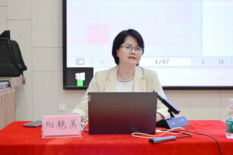 圖為廣西建設(shè)職業(yè)技術(shù)學(xué)院教師發(fā)展中心主任陽艷美教授作專題培訓(xùn)