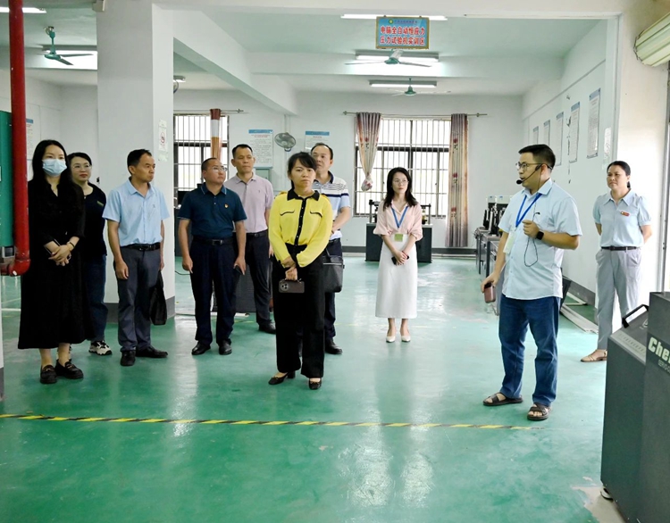 圖為參觀汽車與機(jī)電學(xué)院實(shí)驗實(shí)訓(xùn)室