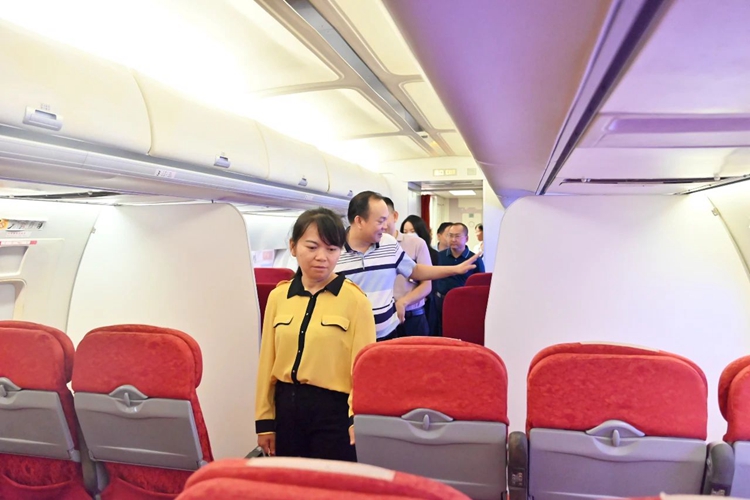 圖為參觀航空模擬綜合實(shí)訓(xùn)室
