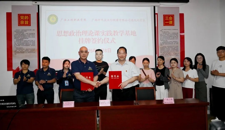 6月8日,廣西工程職業(yè)學(xué)院和廣西平果眾天行投資有限公司通天河愛國主義教育基地舉行共建“思想政治理論課實踐教學(xué)基地”揭牌暨簽約儀式。