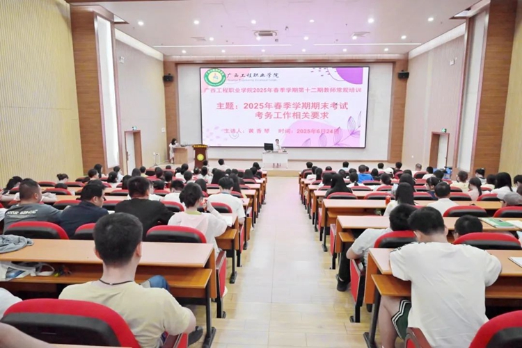 為做好期末考試各項有關(guān)工作,規(guī)范考試組織管理,嚴(yán)肅考試紀(jì)律,提高教師在教育教學(xué)工作中的效率,6月24日,學(xué)校在圖文信息大樓一樓學(xué)術(shù)報告廳開展“2025年春季學(xué)期期末考試考務(wù)工作相關(guān)要求”專題培訓(xùn),由教務(wù)處處長黃香琴主講。此次培訓(xùn)為我校2025年春季學(xué)期第十二期教師常規(guī)培訓(xùn)。全體教師參加培訓(xùn)。