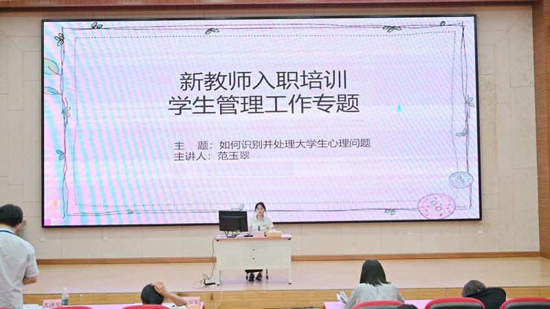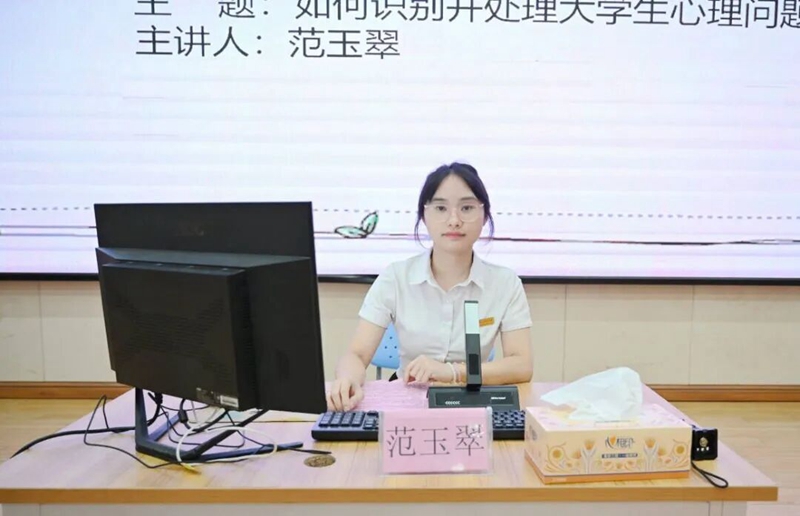 圖為學生工作處科長范玉翠作大學生心理健康問題專題培訓
