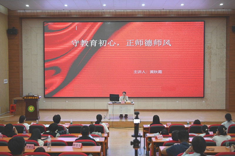 黨委副書記、校長羅艷妮圍繞《師德師風第一課——立德樹人,匠心筑夢》主題,介紹學校 “工科筑基、服務產業(yè)、文化鑄魂” 的辦學核心,解讀 “四有” 好老師標準與教育家精神,明確行政人員、專任教師、輔導員的師德踐行路徑,鼓勵新教師實現從 “職業(yè)新人” 到 “職教實踐者” 的轉變,以專業(yè)能力助學生掌握技能,以師德底色幫學生樹立準則。