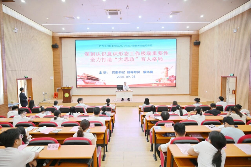黨委書記、督導專員蒙本曼以《師德師風第一課——深刻認識意識形態(tài)工作極端重要性 全力打造“大思政課”育人格局》為題,開啟新教師崗前培訓第一課。他從 “意識形態(tài)工作是黨的一項極端重要的工作” 和 “以強有力的思想政治工作打造‘大思政’育人格局” 兩方面展開,結合網絡熱點事件與典型案例,深入淺出地闡釋意識形態(tài)工作的重要性,強調要牢固樹立意識形態(tài)主陣地意識,提高研判能力,守好教書育人陣地。他緊扣習近平總書記關于意識形態(tài)工作的重要論述,系統(tǒng)解讀意識形態(tài)的科學內涵、本質特征,以及其對推動國家高質量發(fā)展、培育時代新人的重要作用。蒙本曼書記強調,學校作為意識形態(tài)工作重要陣地,必須堅持黨的全面領導,將思想政治工作貫穿教育教學全過程,構建“全員、全程、全方位”大思政育人格局;全體新教師要切實提高意識形態(tài)辨別能力,自覺抵制錯誤思潮,始終在思想上政治上行動上同以習近平同志為核心的黨中央保持高度一致,確保學校教育事業(yè)沿著正確政治方向前進。