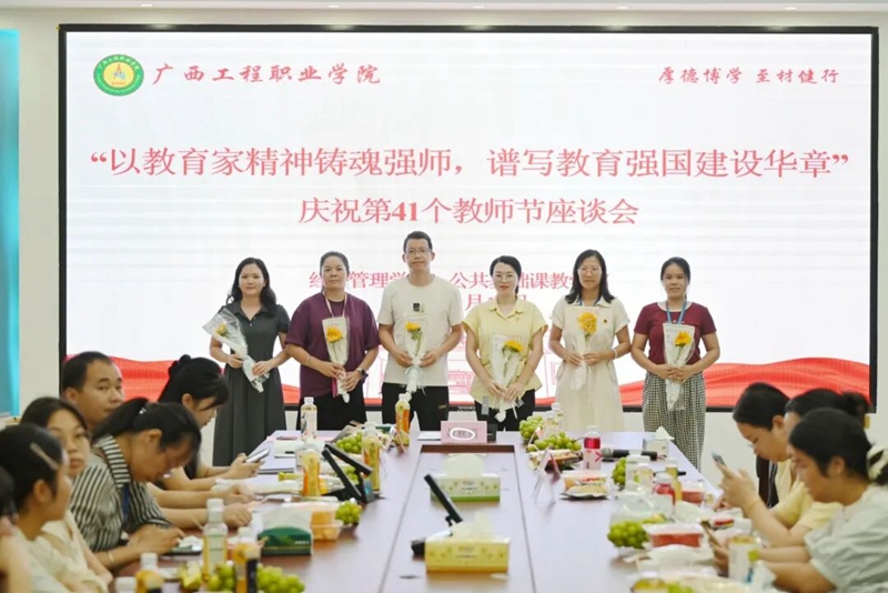 學(xué)校黨委書記、政府督導(dǎo)專員蒙本曼,黨委副書記、校長羅艷妮,黨委副書記黃秋霞,紀(jì)委書記、副校長彭高彬,副校長黃德偉、蔣茂麗,校長助理李明澤、梁善雅等校領(lǐng)導(dǎo)分別組織相關(guān)部門召開主題為“以教育家精神鑄魂強師,譜寫教育強國建設(shè)華章”的教師節(jié)座談會。