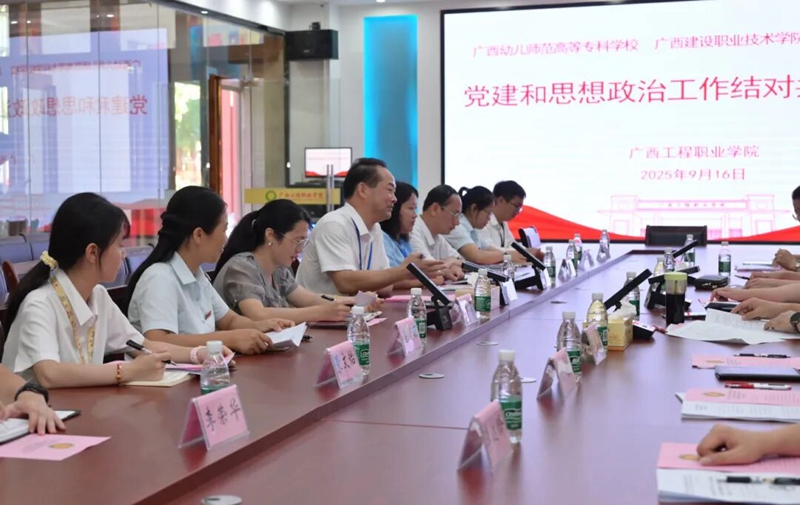 為深入學(xué)習(xí)貫徹習(xí)近平新時(shí)代中國特色社會(huì)主義思想及全國全區(qū)黨的建設(shè)工作會(huì)議精神,全面落實(shí)新時(shí)代黨的建設(shè)總要求與新時(shí)代黨的組織路線,切實(shí)深化高校間黨建和思想政治工作結(jié)對(duì)共建合作共贏,9月16日上午,我校與廣西幼兒師范高等專科學(xué)校、廣西建設(shè)職業(yè)技術(shù)學(xué)院在學(xué)校圖書館大數(shù)據(jù)中心開展黨建和思想政治工作結(jié)對(duì)共建交流會(huì),共商校際黨建與思政工作結(jié)對(duì)共建發(fā)展新路徑。