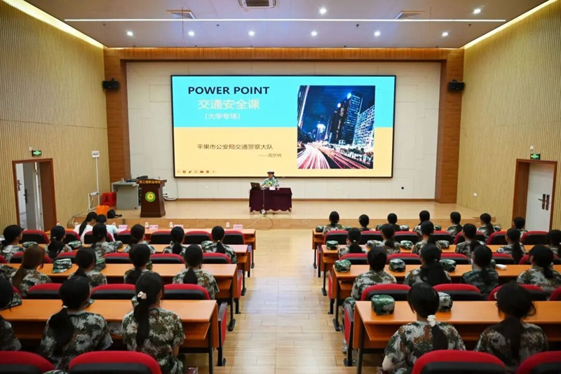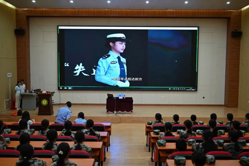 圖為交警大隊(duì)教導(dǎo)員周夢(mèng)楠警官作專題講座