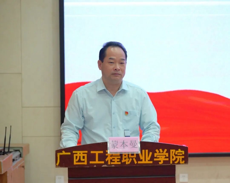 圖為學(xué)校黨委書(shū)記、政府督導(dǎo)專(zhuān)員蒙本曼致辭