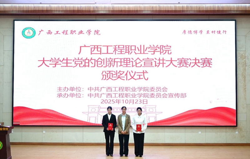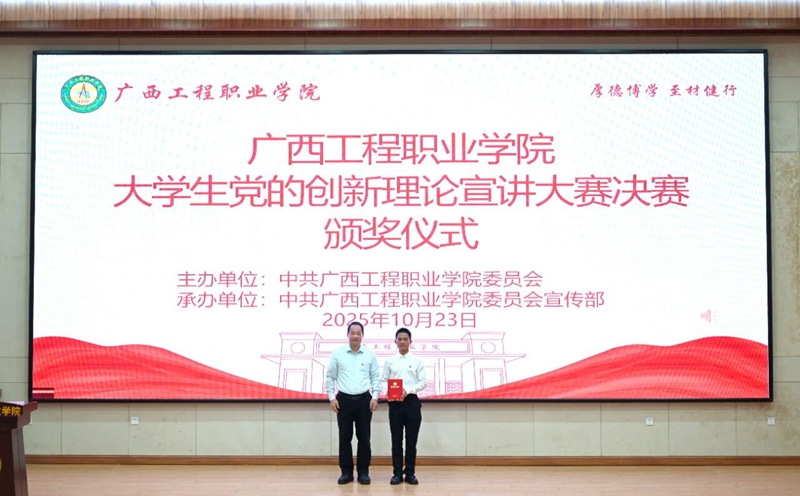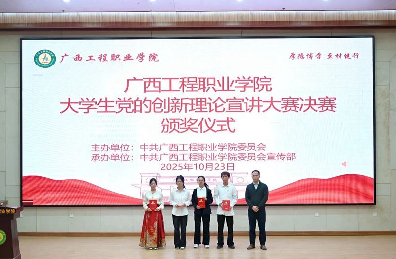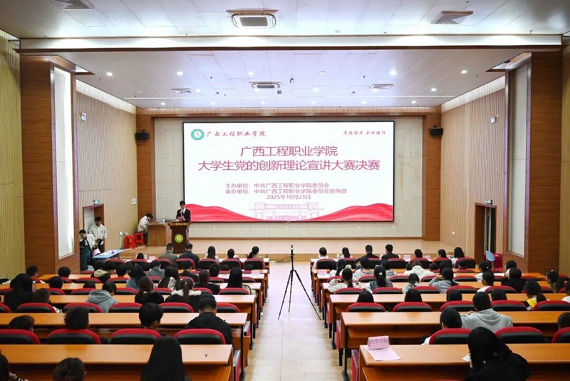 為進(jìn)一步推動(dòng)學(xué)習(xí)宣傳貫徹習(xí)近平新時(shí)代中國(guó)特色社會(huì)主義思想走深走實(shí)走心,增進(jìn)我校學(xué)生對(duì)黨的創(chuàng)新理論的政治認(rèn)同、思想認(rèn)同、理論認(rèn)同、情感認(rèn)同,10月23日晚,廣西工程職業(yè)學(xué)院大學(xué)生黨的創(chuàng)新理論宣講大賽決賽在圖文信息大樓一樓學(xué)術(shù)報(bào)告廳舉行。學(xué)校黨委書(shū)記、政府督導(dǎo)專(zhuān)員蒙本曼出席現(xiàn)場(chǎng),黨委辦公室、黨委宣傳部、各黨組織書(shū)記(副書(shū)記)及二級(jí)學(xué)院師生代表400多人到場(chǎng)觀賽。