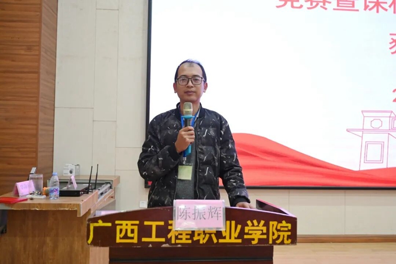 獲獎(jiǎng)教師代表陳振輝發(fā)言。他詳細(xì)講述了備賽過程中的積累與沉淀,分享了以賽促學(xué)、以賽強(qiáng)能的成長(zhǎng)感悟。