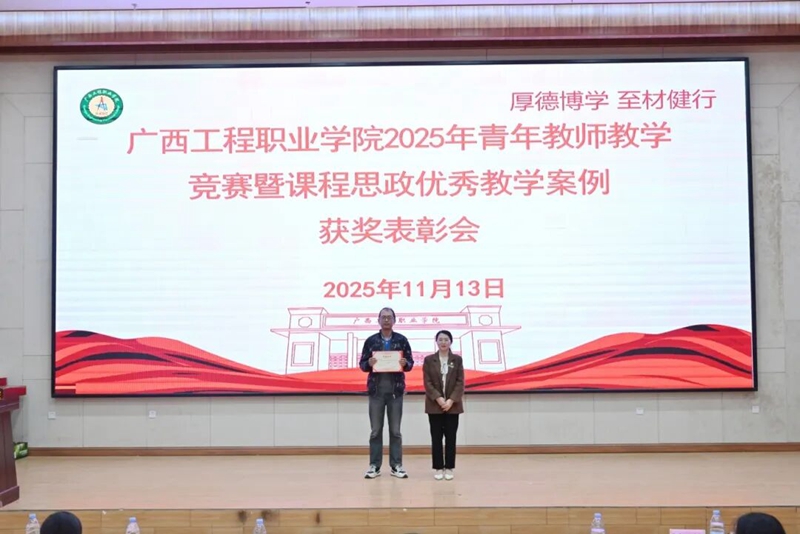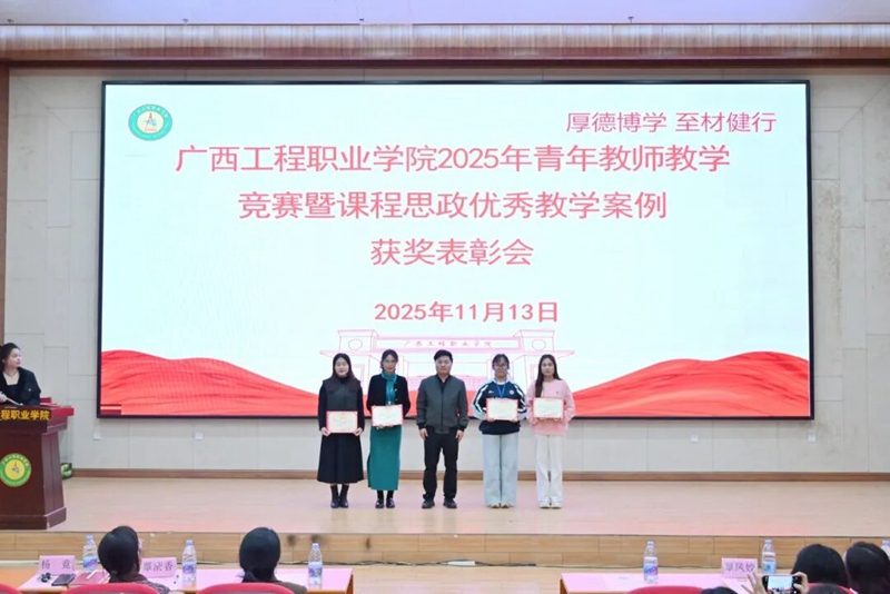 為深入落實(shí)立德樹人根本任務(wù),持續(xù)推進(jìn)課程思政建設(shè)走深走實(shí),全面提升青年教師教學(xué)能力與育人水平,表彰先進(jìn)典型、凝聚奮進(jìn)力量,11 月 13 日下午,廣西工程職業(yè)學(xué)院 2025 年青年教師教學(xué)競(jìng)賽暨課程思政優(yōu)秀教學(xué)案例評(píng)選獲獎(jiǎng)表彰會(huì)在圖文信息中心一樓學(xué)術(shù)報(bào)告廳舉行。學(xué)校黨委副書記黃秋霞、教務(wù)處處長(zhǎng)黃香琴、經(jīng)濟(jì)管理學(xué)院院長(zhǎng)覃清香、藝術(shù)設(shè)計(jì)學(xué)院院長(zhǎng)覃鳳姣、教育學(xué)院院長(zhǎng)胡星萍、汽車與機(jī)電學(xué)院院長(zhǎng)楊竟、馬克思主義學(xué)院副院長(zhǎng)李麗詩(shī)、鐵道與航空學(xué)院副院長(zhǎng)廖嬌、土木工程學(xué)院副院長(zhǎng)陳春任出席大會(huì),全體任課教師參加會(huì)議。表彰會(huì)由教務(wù)處科長(zhǎng)覃海梅主持。