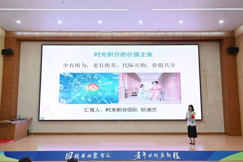 圖為《時(shí)光積分——基于校企社聯(lián)動(dòng)賦能的代際互助養(yǎng)老模式創(chuàng)新》榮獲金獎(jiǎng)