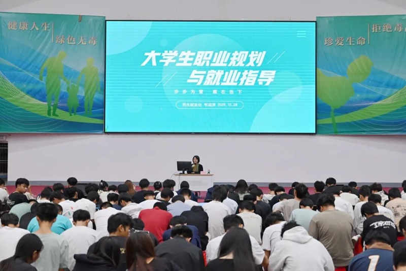 圖為招生就業(yè)處科長韋潤萍主講《大學(xué)生就業(yè)指導(dǎo)》專題教育,她結(jié)合大量典型就業(yè)案例,對當(dāng)前就業(yè)市場形勢展開全面且深入的剖析。專題教育不僅解讀了熱門行業(yè)的發(fā)展動態(tài)與趨勢走向,還詳細(xì)闡述了不同崗位所需的核心技能與綜合素養(yǎng),內(nèi)容凝練實用、干貨滿滿,讓在場學(xué)子受益匪淺。