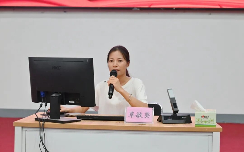 圖為學(xué)生工作處資助科科長范玉翠作《獎助學(xué)金政策》專題教育