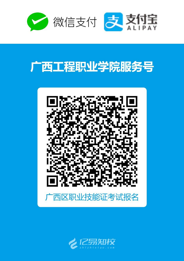 注:所收費用含培訓(xùn)費、考試費和辦證費。二、報名方式 1.用微信或者支付寶掃“廣西壯族自治區(qū)職業(yè)技能證考試報名”二維碼。