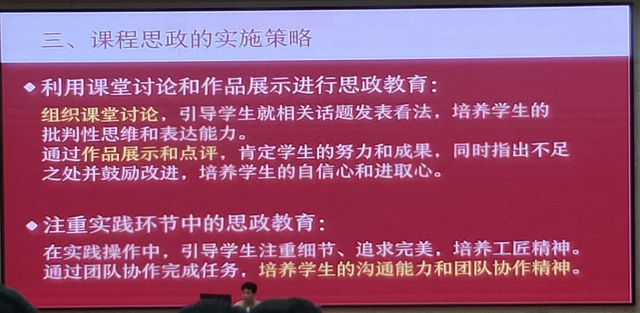 三位主講人的分享各具特色,都緊密圍繞思政要點(diǎn),將思政教育融入專業(yè)課程中,取得了良好的教學(xué)效果。通過此次培訓(xùn),教師們紛紛表示受益匪淺,不僅學(xué)到了更多教學(xué)技巧,也對如何在專業(yè)課程中融入思政元素有了新的認(rèn)識(shí)和思考。