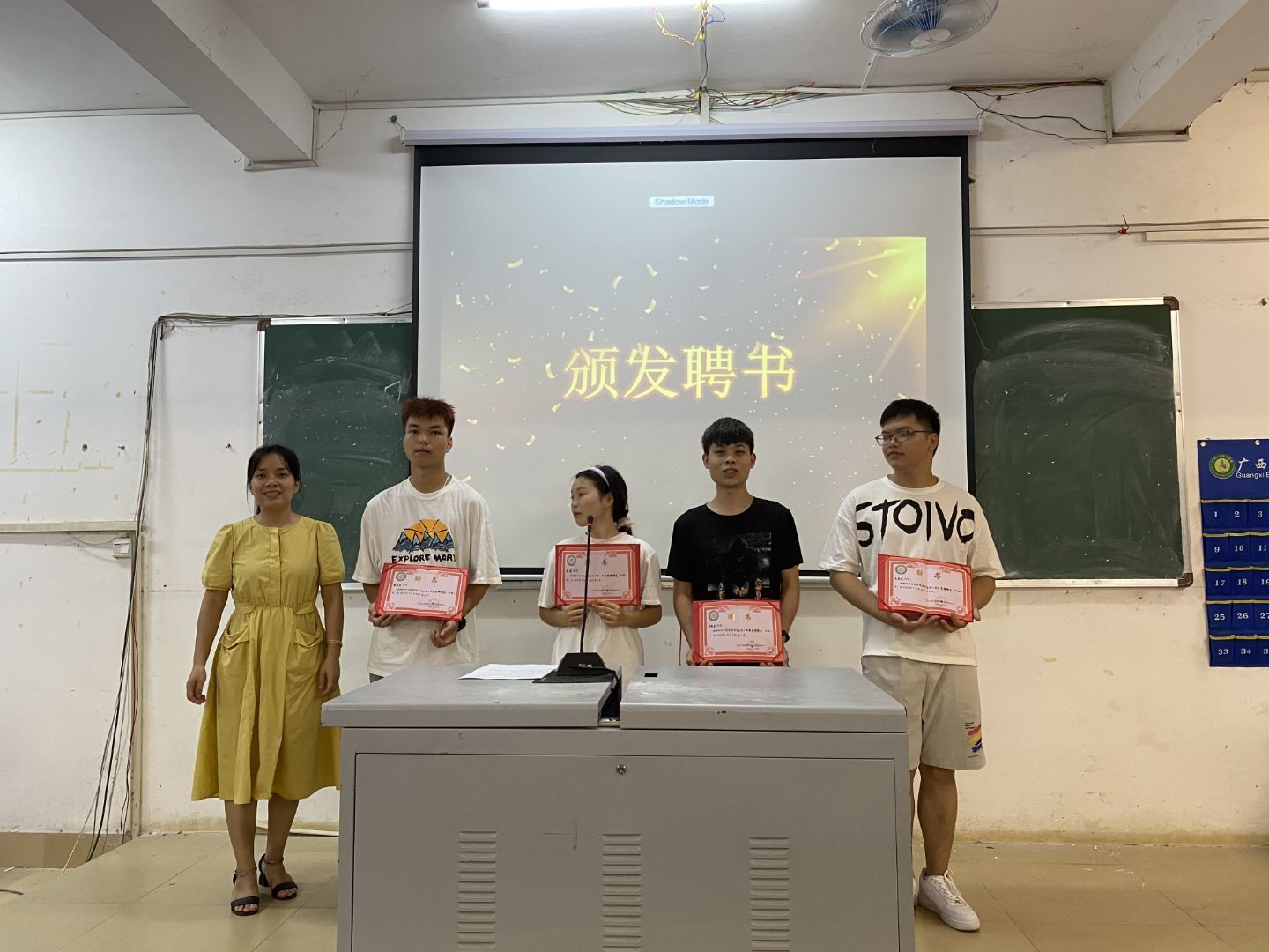 后勤管理中心陳鋒老師為第三屆后管會(huì)會(huì)長(zhǎng)和副會(huì)長(zhǎng)頒發(fā)了聘書