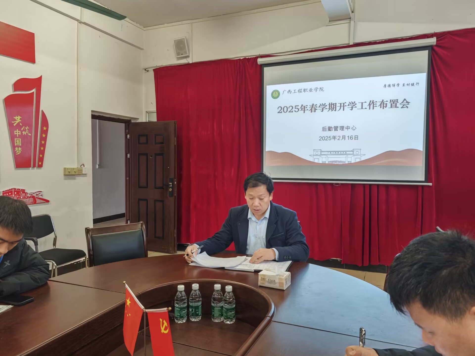 為確保新學期開學各項后勤保障工作順利開展,為全校師生提供安全、舒適、便捷的校園環(huán)境,后勤管理中心于2025年2月16日在實踐教學基地樓二樓會議室召開2025年春學期開學工作布置會。后勤管理中心全體工作人員參加了此次會議。