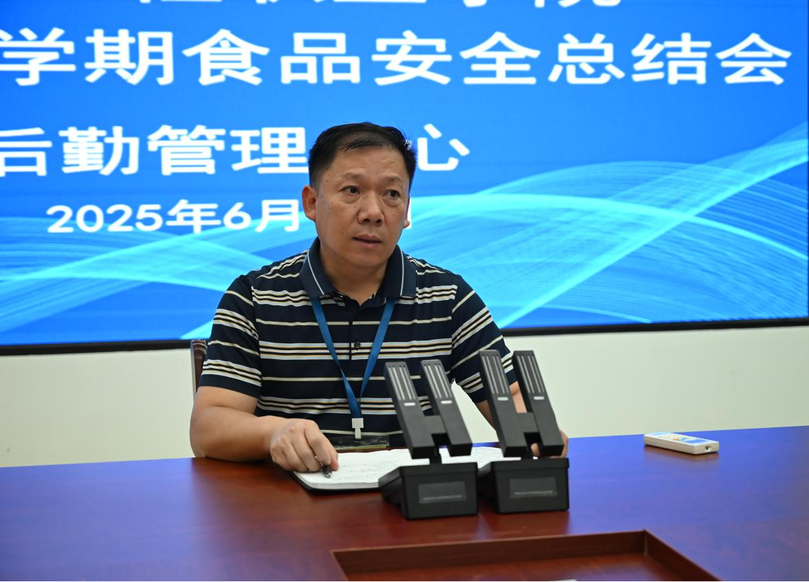 2025年6月19日,后勤管理中心在圖書館大數(shù)據(jù)中心召開2025年春學(xué)期食品安全總結(jié)會(huì),劉兆兵主任主持,膳食科科長(zhǎng)黃桂芬及各餐飲單位負(fù)責(zé)人參會(huì)。
