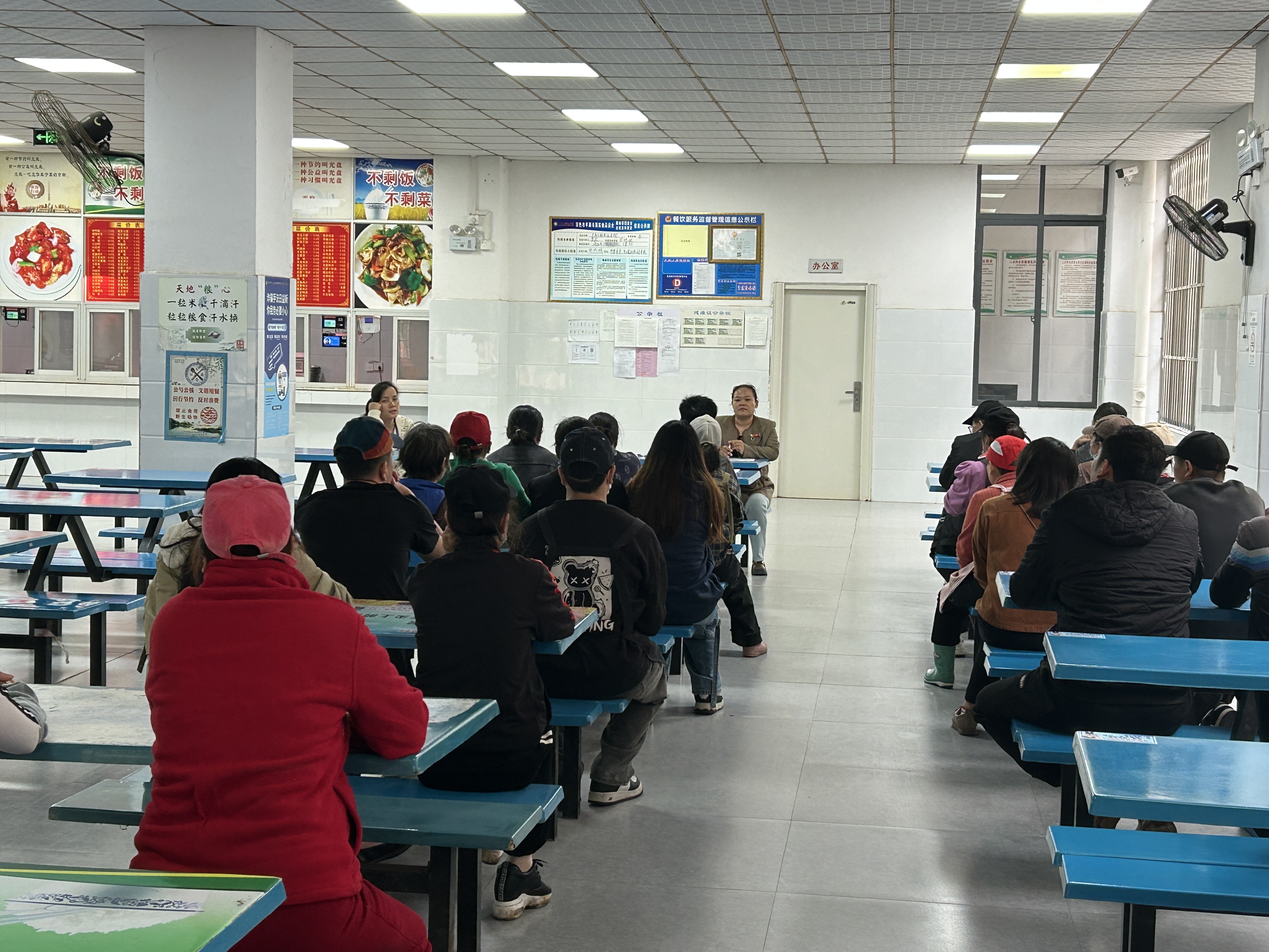 2025年10月24日下午,我校后勤管理中心在多功能飯?zhí)谜匍_(kāi)校園食品安全培訓(xùn)會(huì)議。梁欣欣副主任主持會(huì)議,膳食科科長(zhǎng)黃桂芬和校內(nèi)所有商鋪主管及餐飲區(qū)域管理人員全員參會(huì)。