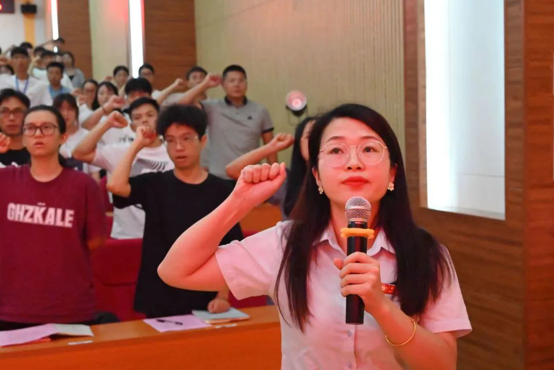 開班典禮上,為增強(qiáng)新任教師的榮譽(yù)感和使命感,黃秋霞副書記帶領(lǐng)新入職教師進(jìn)行了入職宣誓。全體新任教師整齊肅立,右手舉拳,面向國(guó)旗,進(jìn)行了莊嚴(yán)的入職宣誓。