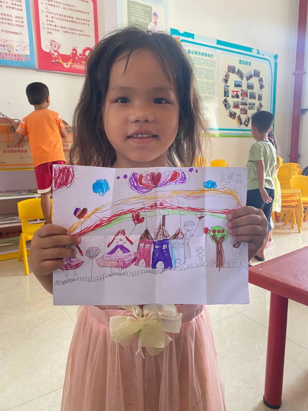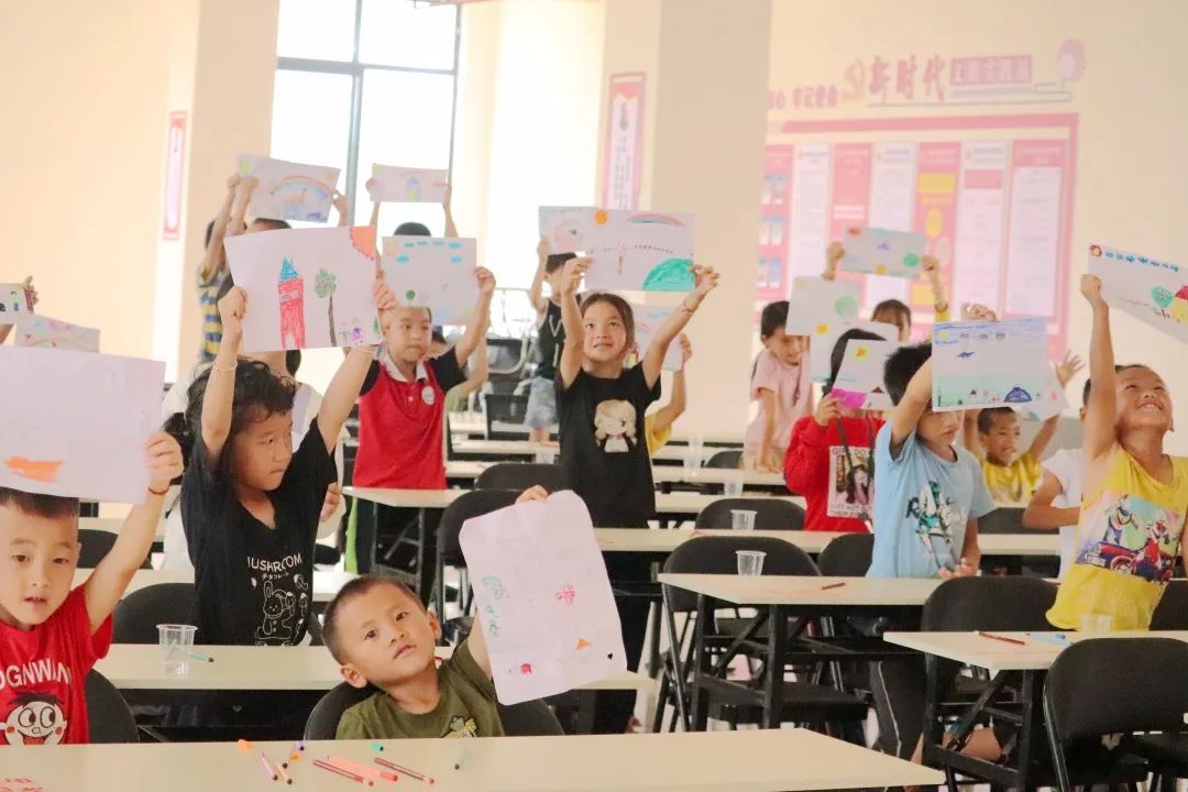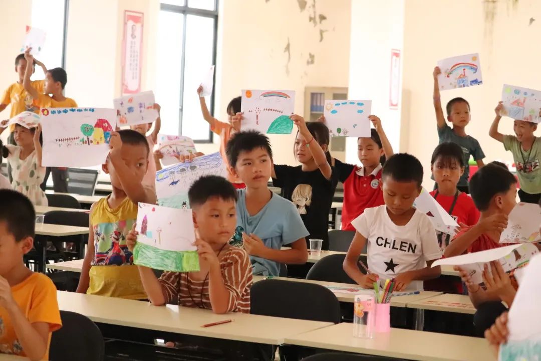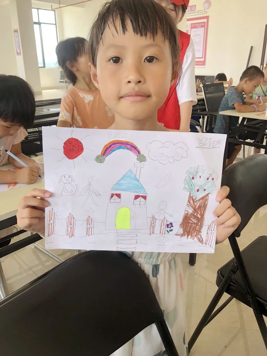 我們的實踐團(tuán)成員們發(fā)揮專業(yè)優(yōu)勢,以生動有趣又淺顯的語言以及邊講邊畫、隨堂指導(dǎo)、點評示范等形式,為孩子們帶來了不一樣的美術(shù)課,激發(fā)了孩子們的繪畫興趣,引導(dǎo)孩子們創(chuàng)作出充滿童真和無限想象力的繪畫作品。