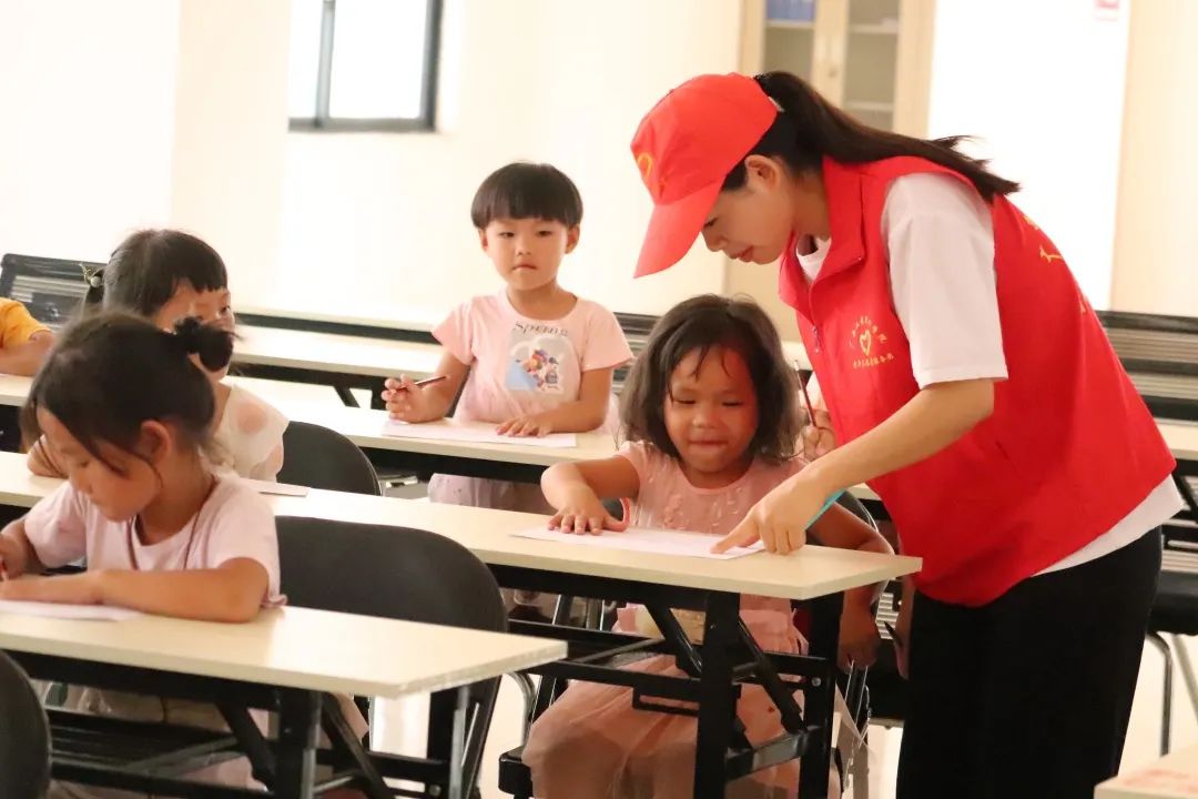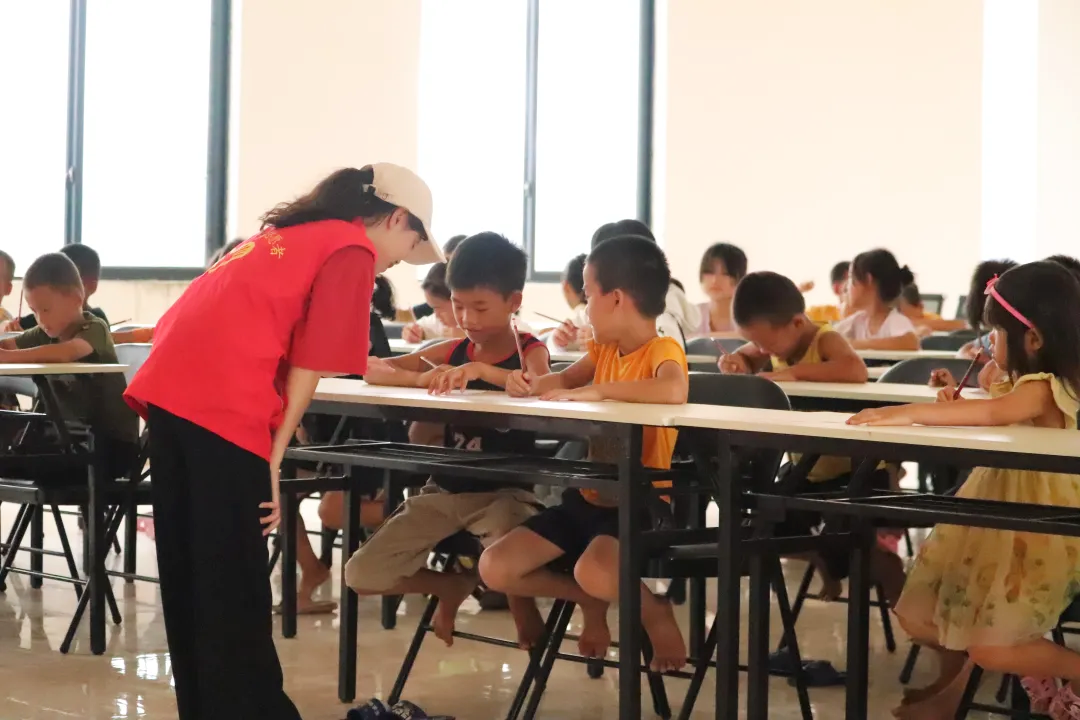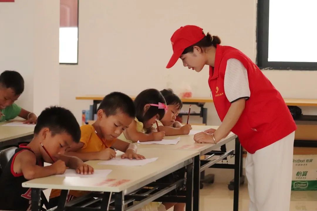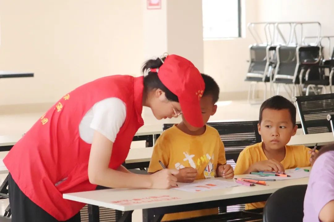 在孩子們畫畫的過程中,團(tuán)隊成員對他們進(jìn)行指導(dǎo)