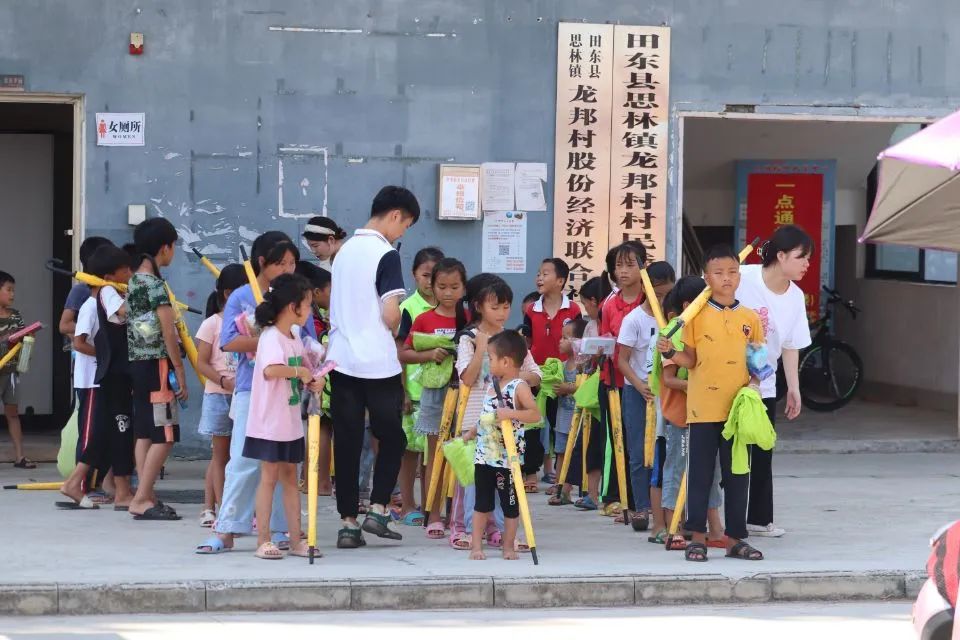 7月14日,廣西工程職業(yè)學(xué)院暑期“三下鄉(xiāng)”社會(huì)實(shí)踐團(tuán)隊(duì)在校團(tuán)委書記梁鳳琴、藝術(shù)設(shè)計(jì)學(xué)院分團(tuán)書記龍金妹及校團(tuán)委黃詩晴老師的帶領(lǐng)下,在思林鎮(zhèn)龍邦村童心港灣開展最后一天的支教活動(dòng)。