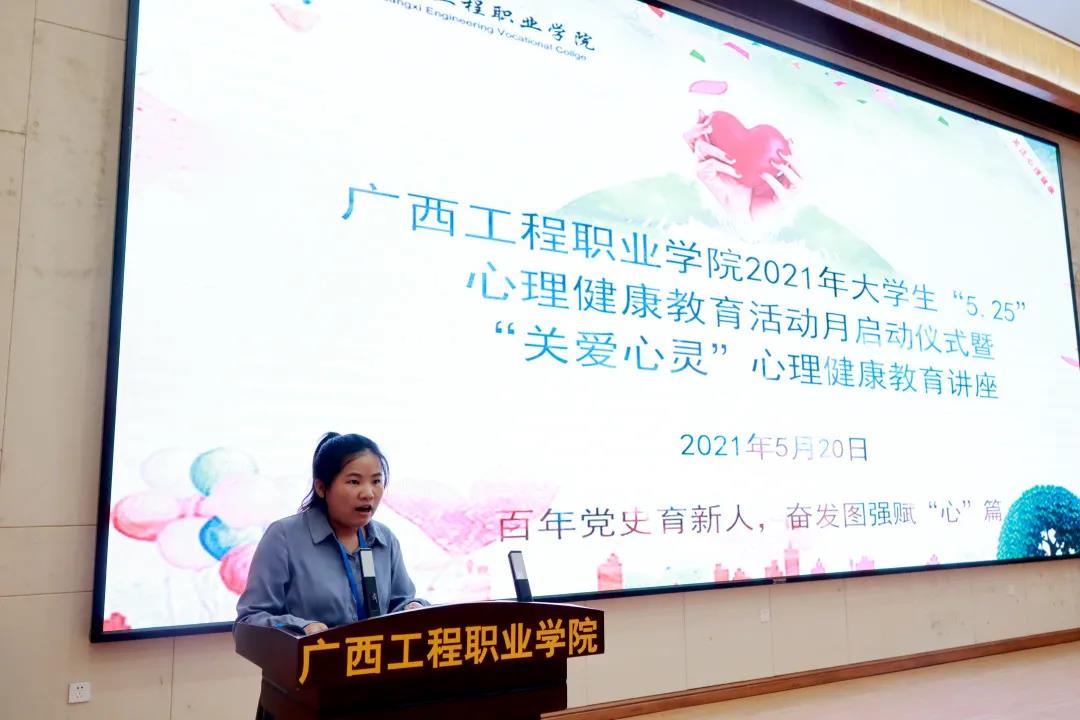 為提升大學生心理健康品質,培育大學生自尊自信、理性平和、積極向上的健康心態(tài), 5月20日下午,校學工處主辦的2021年“5.25”心理健康教育月啟動儀式暨“關愛心靈”心理健康教育講座在圖文報告廳舉行。