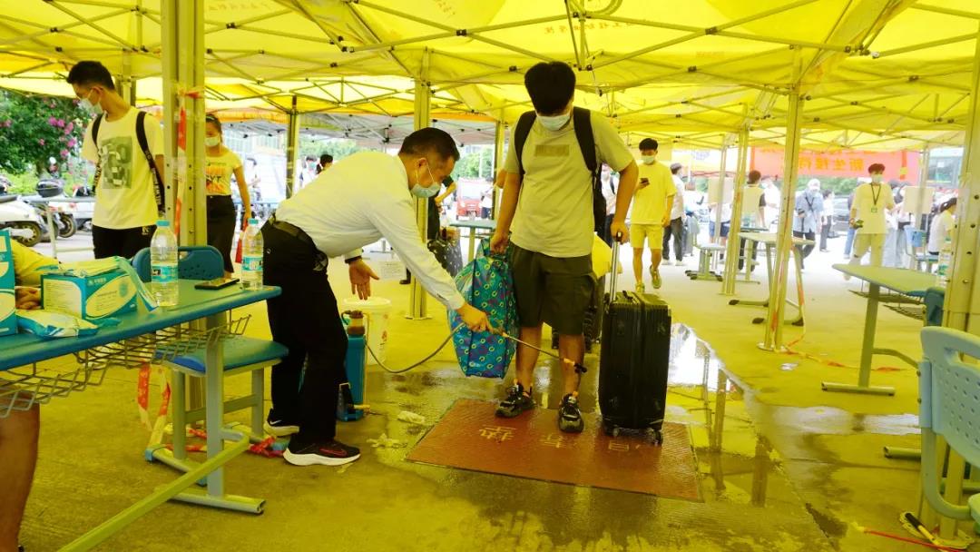 接送新生回到學(xué)校大門