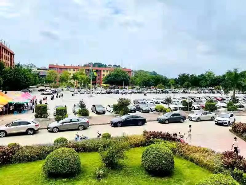 魯班廣場設(shè)置臨時(shí)停車場,方便新生家長