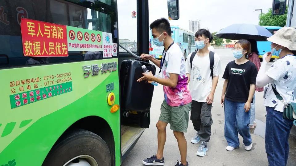 同學(xué)們拖著行李、背著行囊