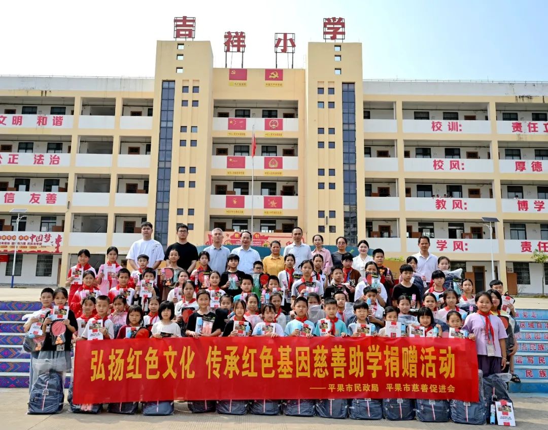 為弘揚(yáng)紅色精神,踐行公益使命,助力教育事業(yè)發(fā)展,2025年4月29日,廣西工程職業(yè)學(xué)院赴平果市吉祥小學(xué)開展“弘揚(yáng)紅色文化 傳承紅色基因”慈善助學(xué)捐贈活動,捐贈圖書及學(xué)習(xí)用品等,為孩子們送去了學(xué)習(xí)物資與關(guān)懷,希望孩子們通過紅色文化的浸潤,博覽群書,增長知識面,奮發(fā)向上,實(shí)現(xiàn)人生夢想?;顒佑善焦忻裾峙c平果市慈善促進(jìn)會主辦。我校副校長黃德偉、團(tuán)委副書記李麗清及教師代表參加了捐贈活動