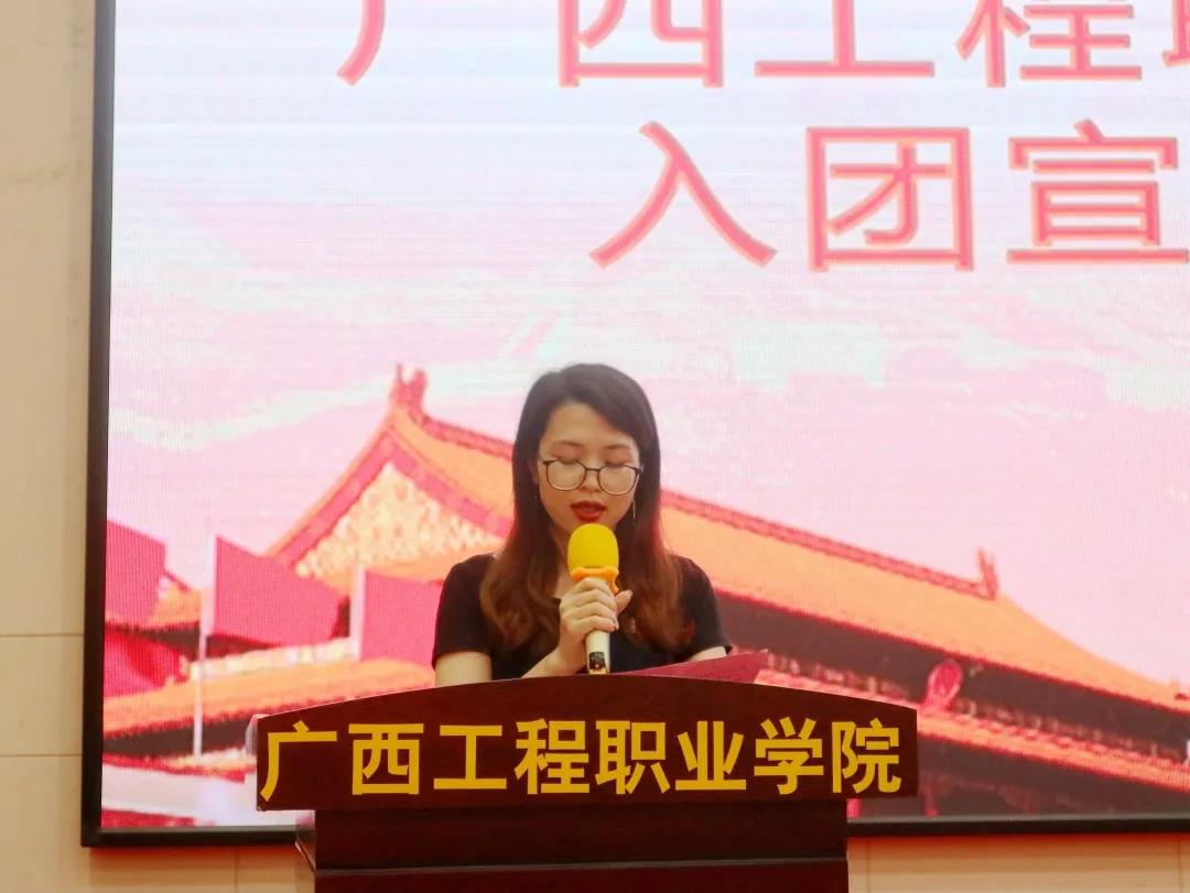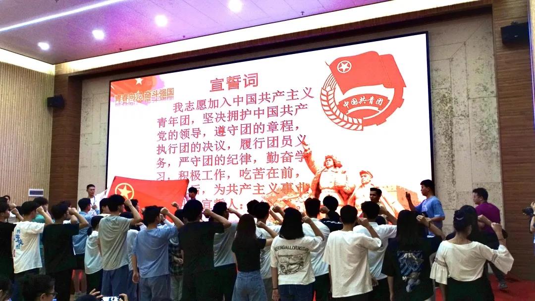 校團(tuán)委陳威老師帶新入團(tuán)員宣讀入團(tuán)誓詞
