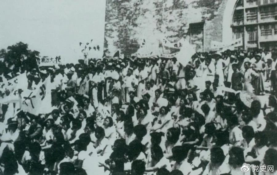 1936年6月13日,北平學(xué)生與市民在鼓樓前舉行聲勢(shì)浩大的抗日集會(huì)。
