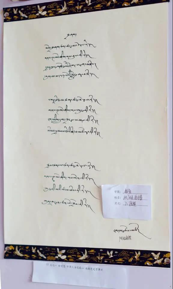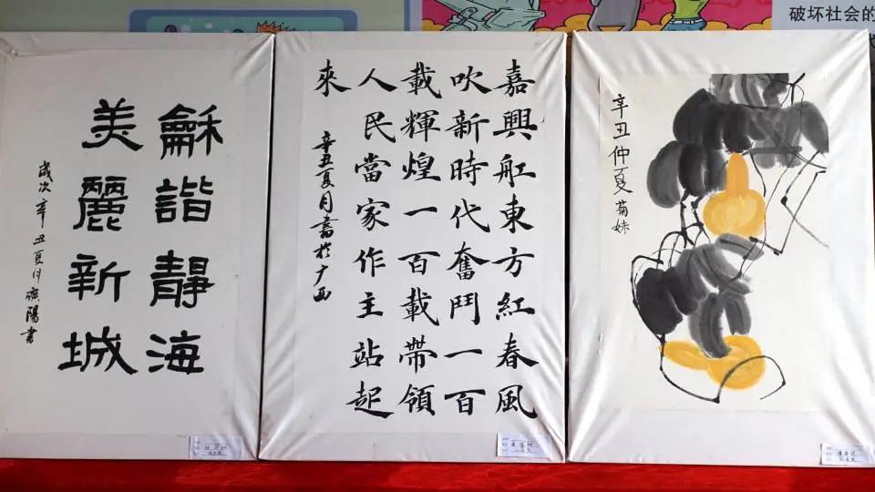 活動展出的作品有:毛筆字幅、繪畫作品、藏文字幅、硬筆書法、水彩繪畫等題材豐富、形式多樣、風(fēng)格鮮明,充分體現(xiàn)當(dāng)代青年大學(xué)生愛黨愛國的情感。